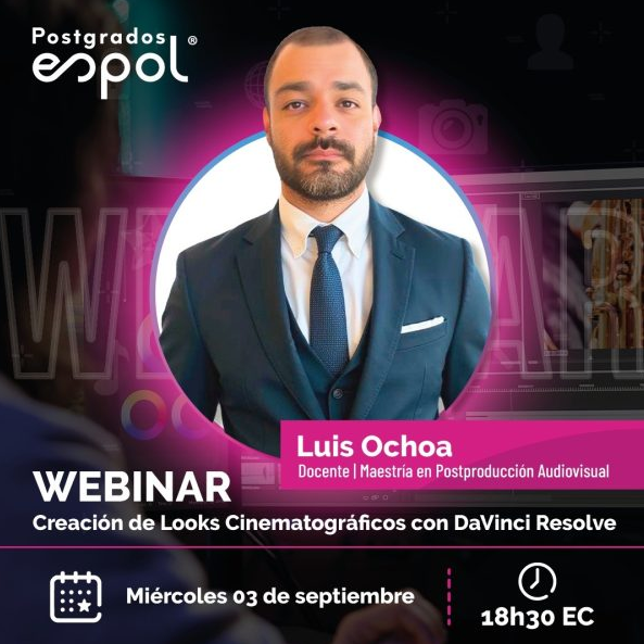 Docente de la materia de color en la imagen de la Maestría de Postproducción Audiovisual – Espol – metodología online.